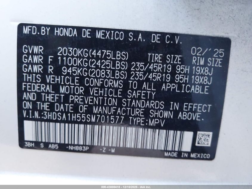 2025 ACURA ADX - 3HDSA1H55SM701577, колір - Білий, 1.5, Бензин, Передній привід із США