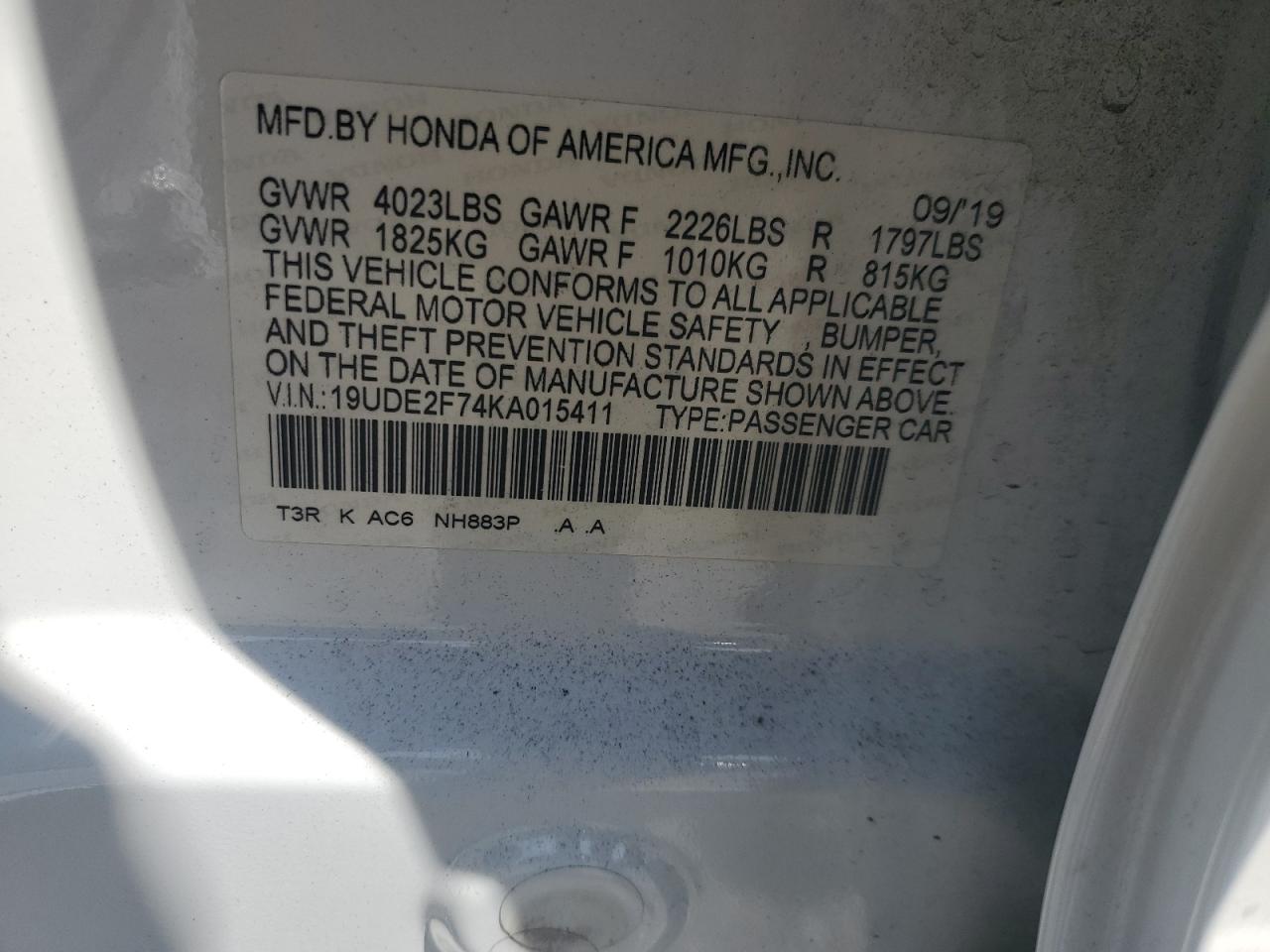 2019 ACURA ILX - 19UDE2F74KA015411, колір - Білий, 2.4, Бензин, із США