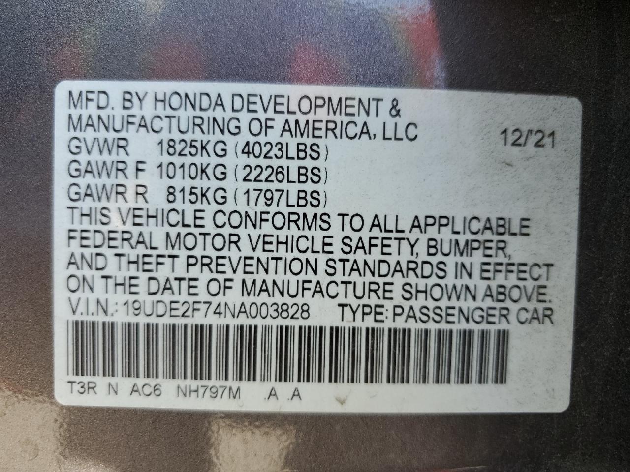 2022 ACURA ILX - 19UDE2F74NA003828, колір - Сірий, 2.4, Бензин, із США