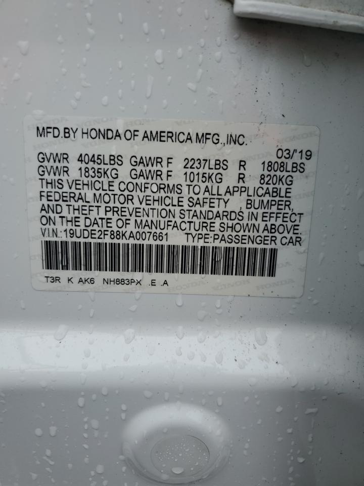 2019 ACURA ILX - 19UDE2F88KA007661, колір - Білий, 2.4, Бензин, із США
