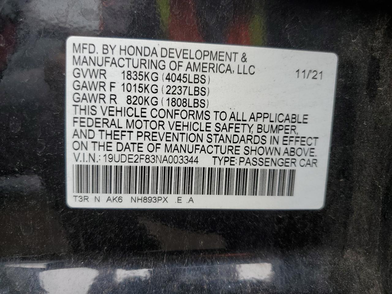 2022 ACURA ILX - 19UDE2F83NA003344, колір - Чорний, 2.4, Бензин, із США