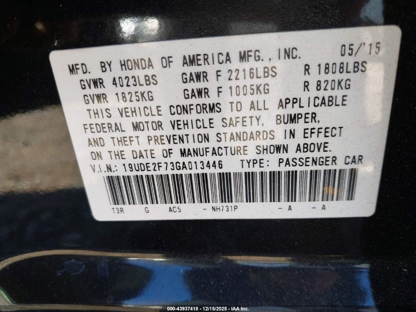 Колір ЧорнийЦиліндри 4Привід Передній привідVIN 19UDE2F73GA013446Стан СтаціонарноУшкодження Передня або задня