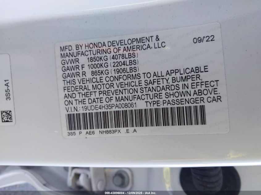 2023 ACURA INTEGRA - 19UDE4H35PA008061, колір - Білий, 1.5, Бензин, Передній привід із США