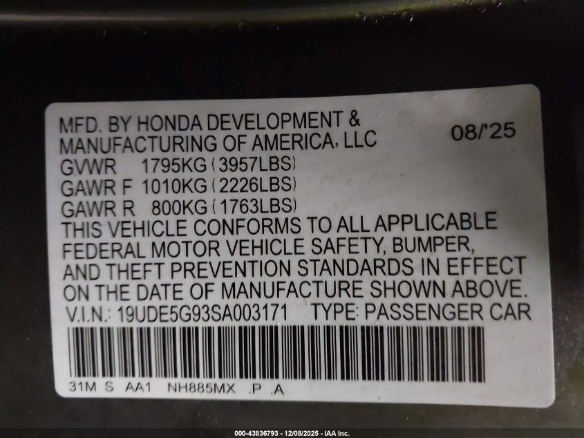 2025 ACURA INTEGRA - 19UDE5G93SA003171, колір - Сірий, 2.0, Бензин, Передній привід із США