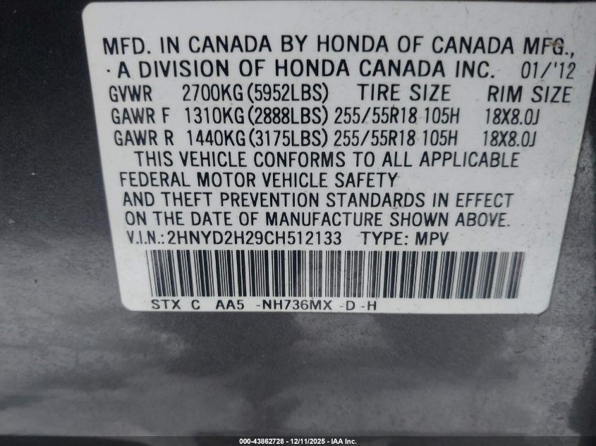 Колір СірийЦиліндри 6Привід Повний привідVIN 2HNYD2H29CH512133Стан Заводиться та їде (перевірено)Ушкодження Права сторона