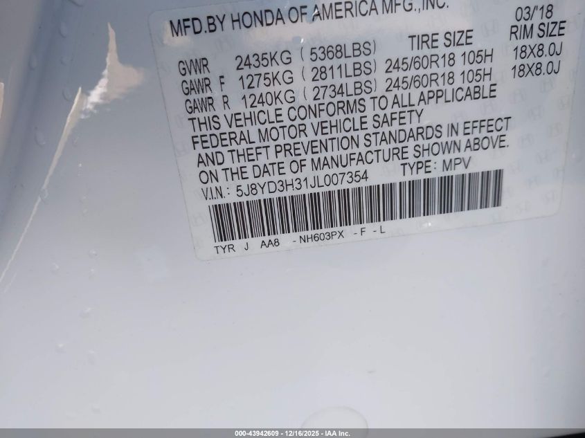 2018 ACURA MDX - 5J8YD3H31JL007354, колір - Білий, 3.5, Бензин, Передній привід із США