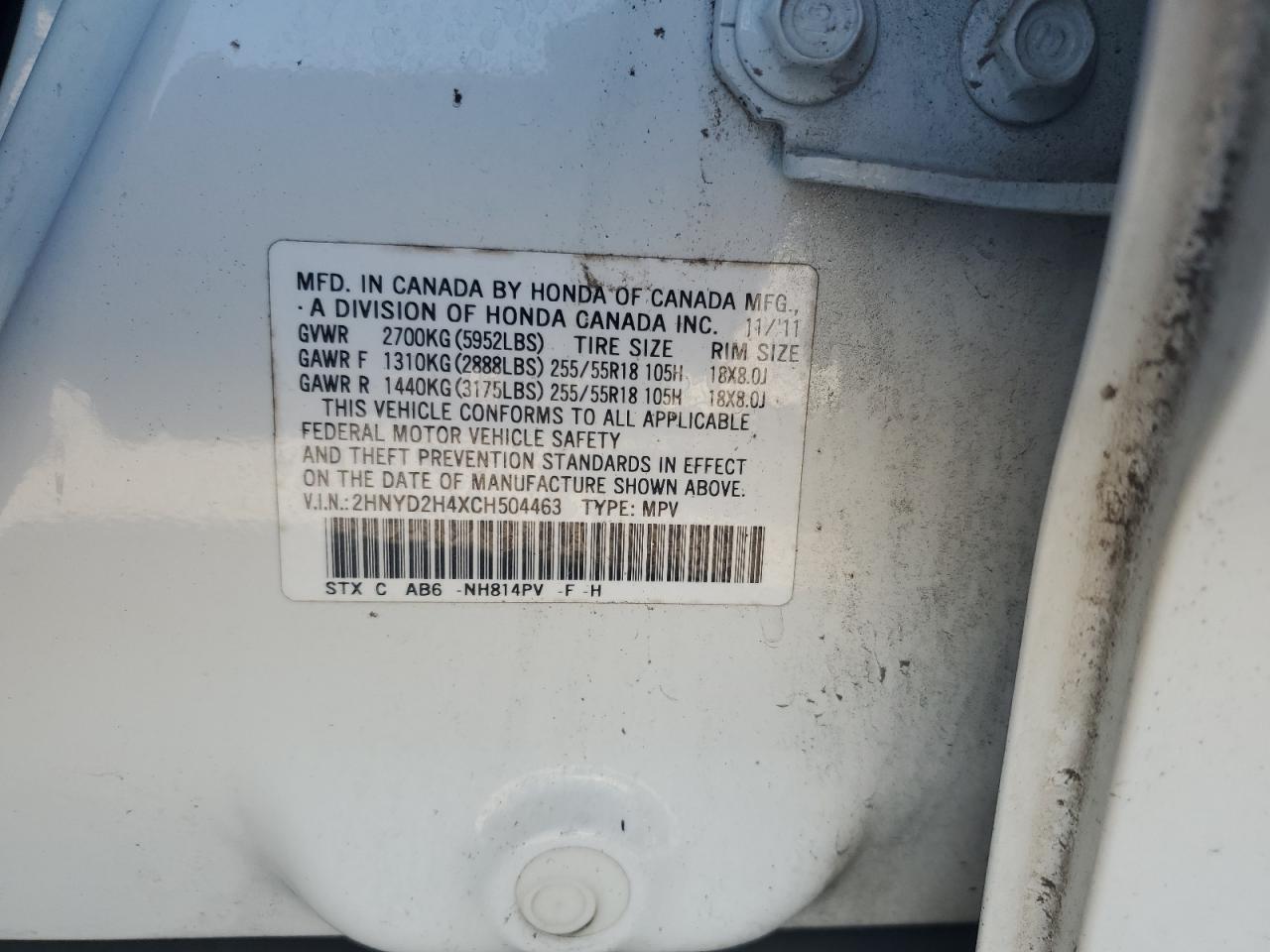 Колір БілийЦиліндри 6Привід Повний привідVIN 2HNYD2H4XCH504463Стан Заводиться та їде (перевірено)Ушкодження НезначніДата аукціона 2025-10-07