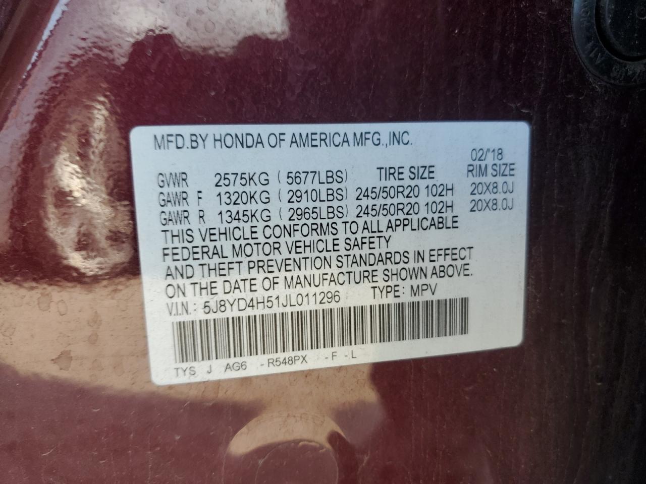 2018 ACURA MDX - 5J8YD4H51JL011296, колір - Бургундія, 3.5, Бензин, Повний привід із США