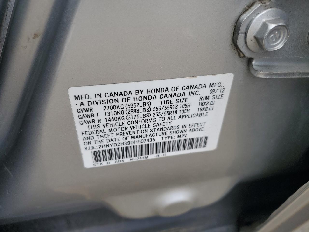 Колір СрібнийЦиліндри 6Привід Повний привідVIN 2HNYD2H38DH507435Стан НевідомоУшкодження Вода