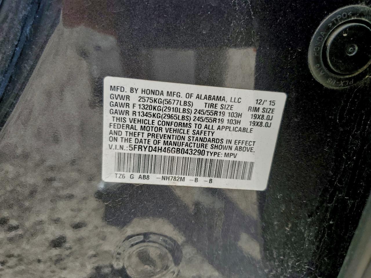 Колір ЧорнийЦиліндри 6Привід Повний привідVIN 5FRYD4H46GB043290Стан Заводиться та їде (перевірено)Ушкодження Задня