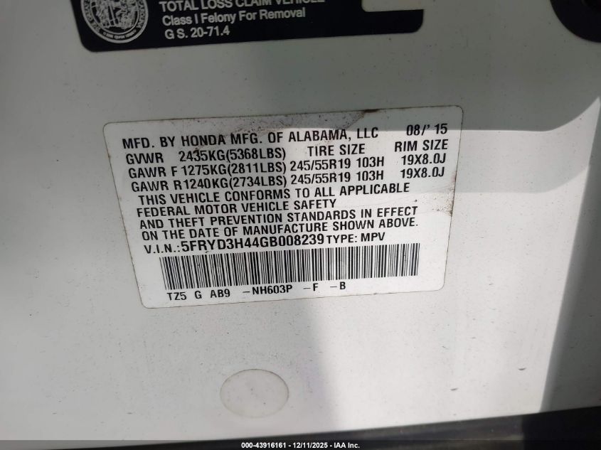 Колір БілийЦиліндри 6Привід Передній привідVIN 5FRYD3H44GB008239Стан Заводиться та їде (перевірено)Ушкодження Задня