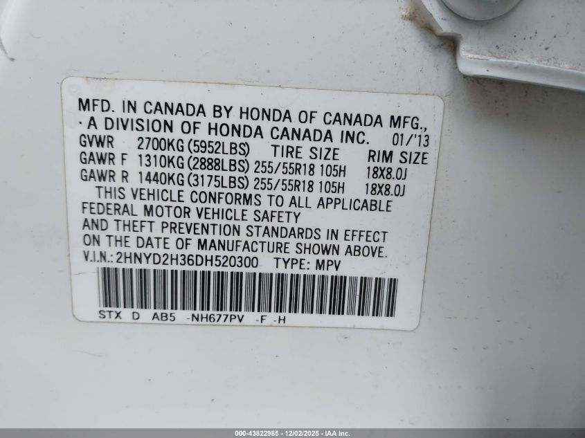Колір БілийЦиліндри 6Привід Повний привідVIN 2HNYD2H36DH520300Стан ЗаводитьсяУшкодження Передня або задня