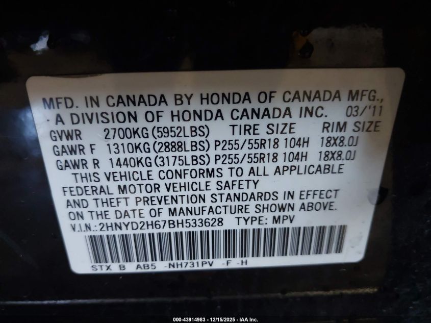 Колір ЧорнийЦиліндри 6Привід Повний привідVIN 2HNYD2H67BH533628Стан Заводиться та їде (перевірено)Ушкодження Передня або задня