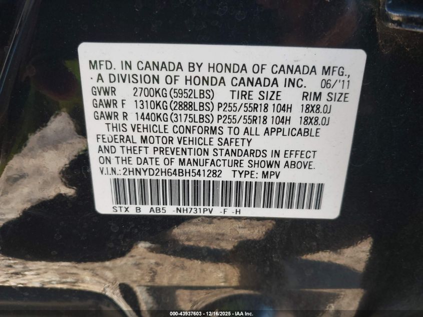 Колір ЧорнийЦиліндри 6Привід Повний привідVIN 2HNYD2H64BH541282Стан Заводиться та їде (перевірено)Ушкодження Передня або задня
