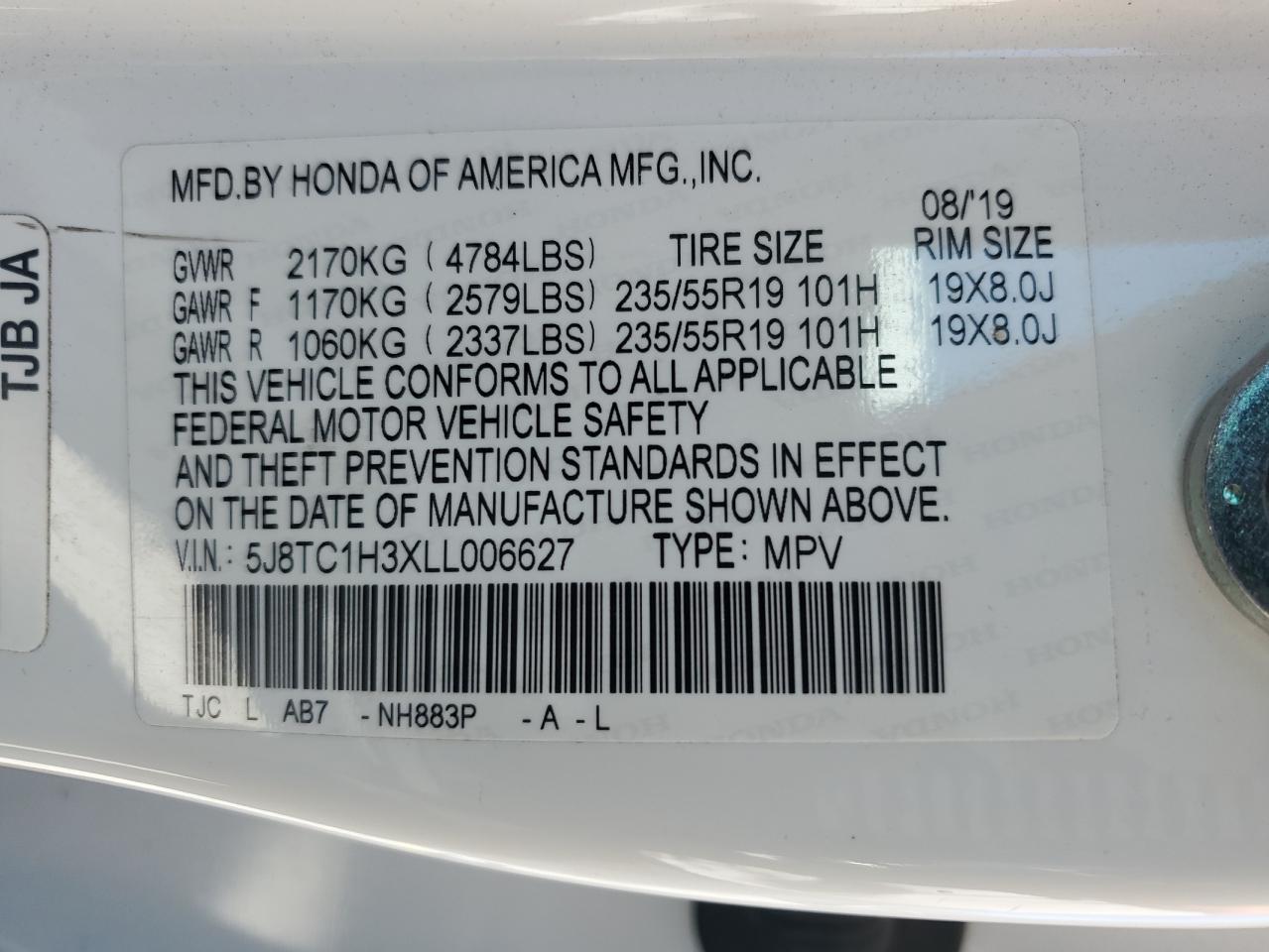 Колір БілийЦиліндри 4VIN 5J8TC1H3XLL006627Стан Заводиться та їде (перевірено)Ушкодження Передня або задняДата аукціона 2025-10-09