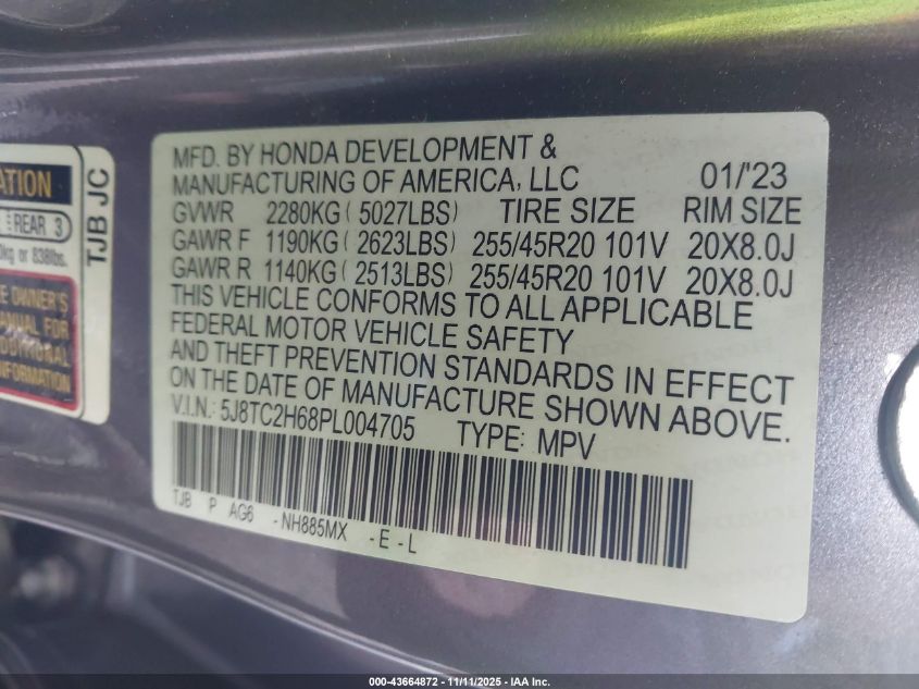 2023 ACURA RDX - 5J8TC2H68PL004705, колір - Сірий, 2.0, Бензин, Повний привід із США