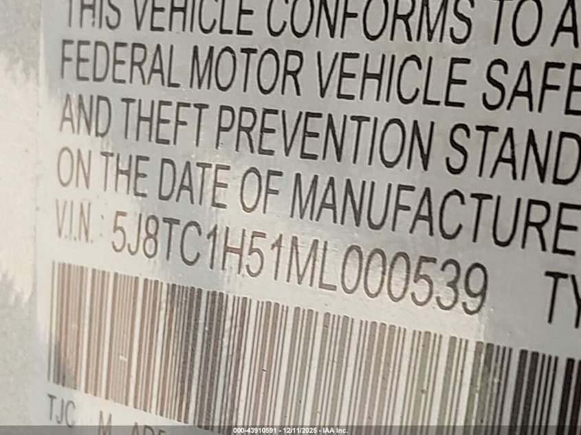 Колір СрібнийЦиліндри 4Привід Передній привідVIN 5J8TC1H51ML000539Стан Заводиться та їде (перевірено)Ушкодження Передня або задня