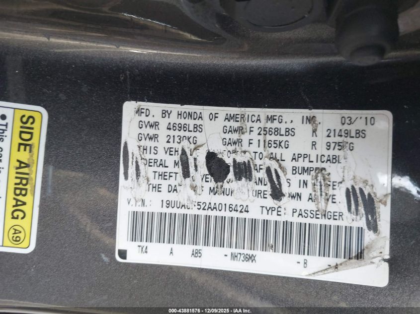 2010 ACURA TL - 19UUA8F52AA016424, колір - Сірий, 3.5, Бензин, Передній привід із США