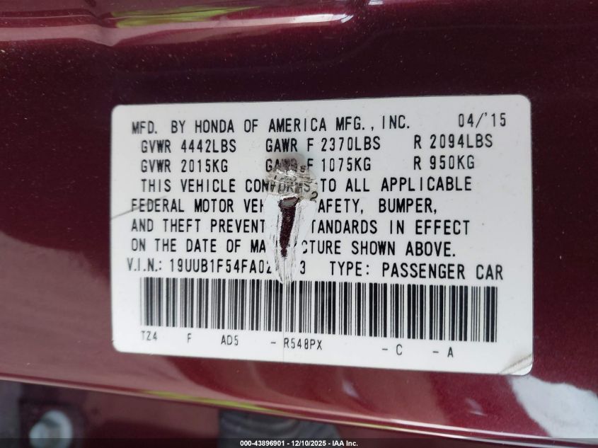 2015 ACURA TLX - 19UUB1F54FA020583, колір - Бургундія, 2.4, Бензин, Передній привід із США