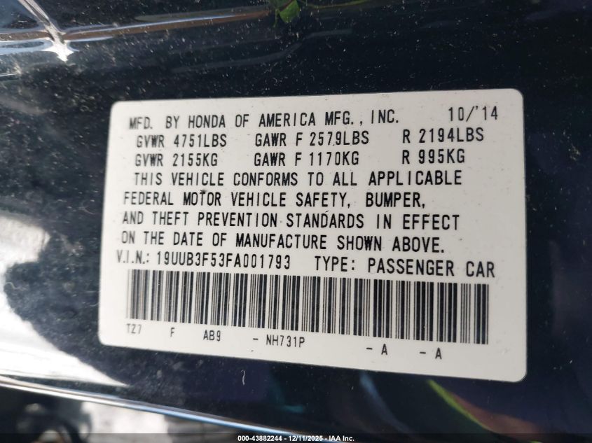 2015 ACURA TLX - 19UUB3F53FA001793, колір - Чорний, 3.5, Бензин, Повний привід із США