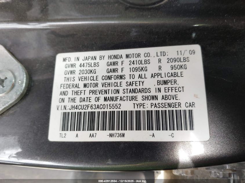 2010 ACURA TSX - JH4CU2F63AC015552, колір - Сірий, 2.4, Бензин, Передній привід із США