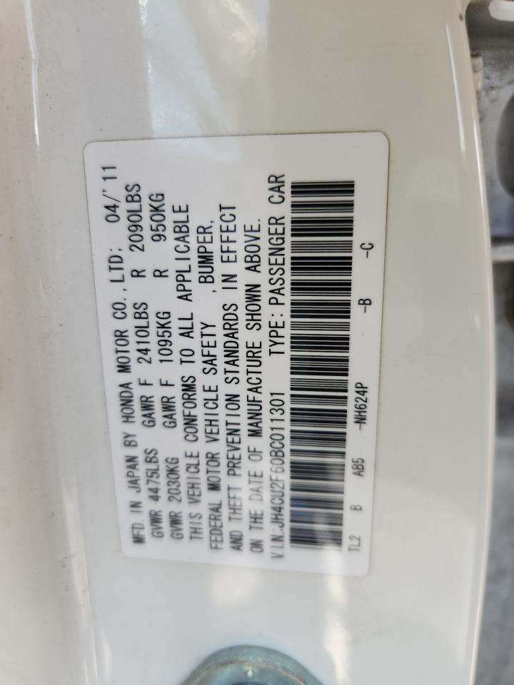 2011 ACURA TSX - JH4CU2F60BC011301, колір - Білий, 2.4, Бензин, із США