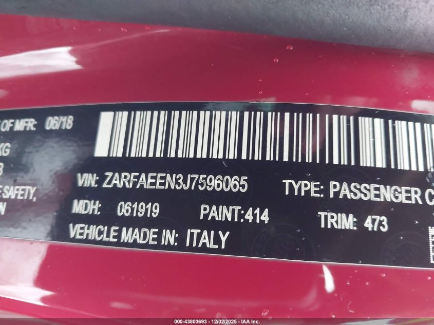 2018 ALFA ROMEO GIULIA - ZARFAEEN3J7596065, колір - Червоний, 2.0, Бензин, Повний привід із США