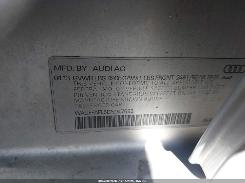 2013 AUDI A4 - WAUFFAFL5DN047692, колір - Срібний, 2.0, Бензин, Повний привід із США