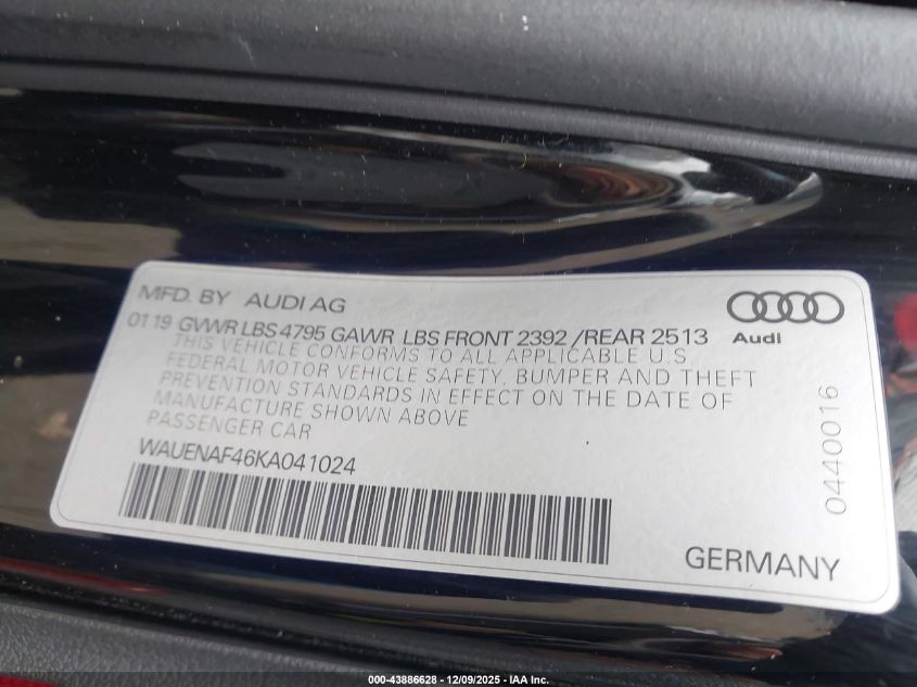 2019 AUDI A4 - WAUENAF46KA041024, колір - Чорний, 2.0, Бензин, Повний привід із США
