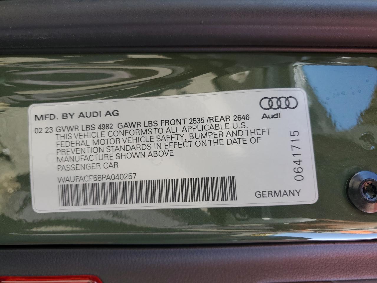 2023 AUDI A5 - WAUFACF58PA040257, колір - Зелений, 2.0, Бензин, Повний привід із США