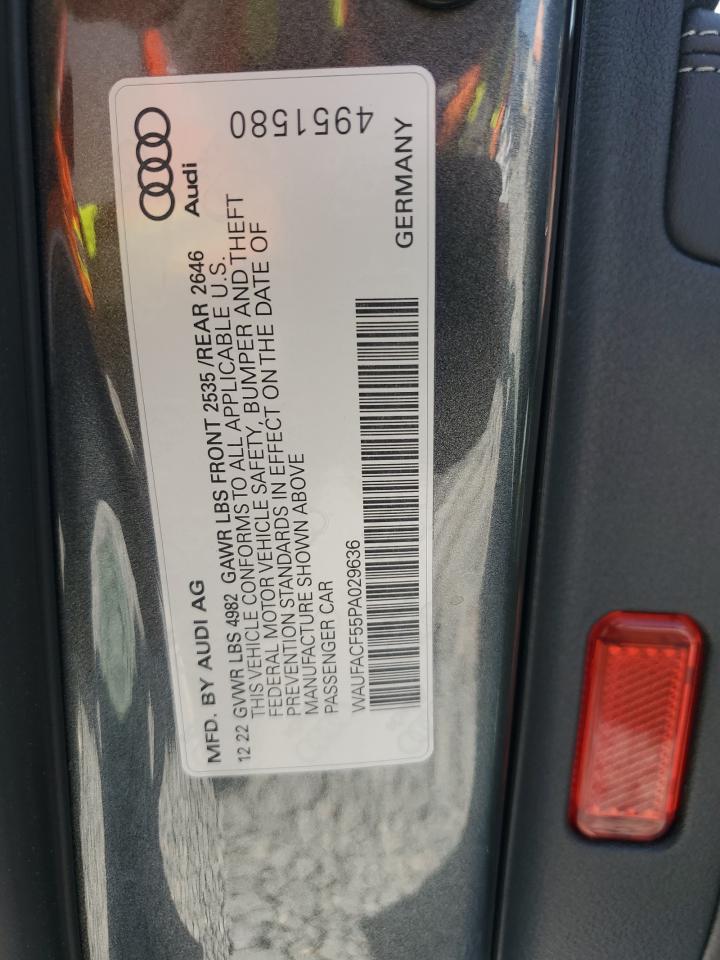2023 AUDI A5 - WAUFACF55PA029636, колір - Сірий, 2.0, Бензин, Повний привід із США