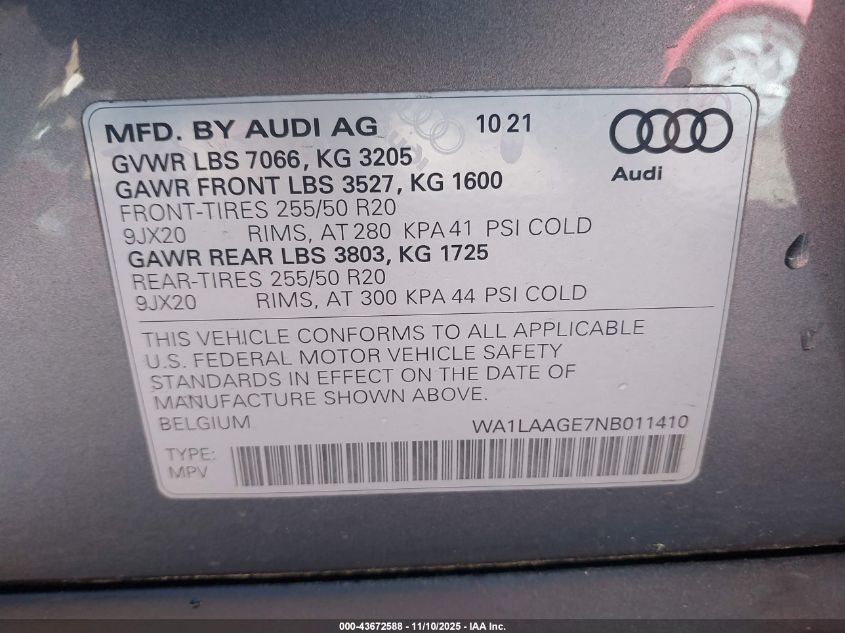 Колір СірийПривід Повний привідVIN WA1LAAGE7NB011410Стан НевідомоУшкодження Задня