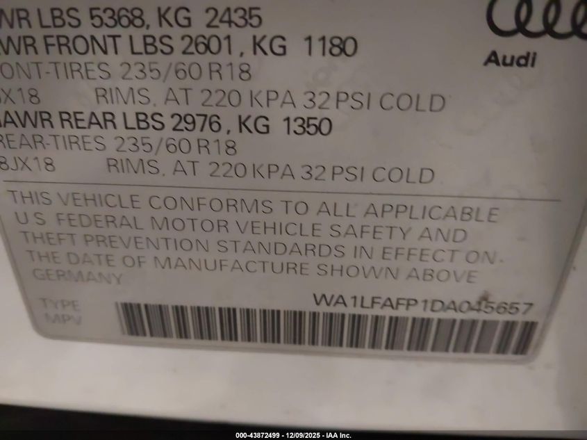 2013 AUDI Q5 - WA1LFAFP1DA045657, колір - Білий, 2.0, Бензин, Повний привід із США