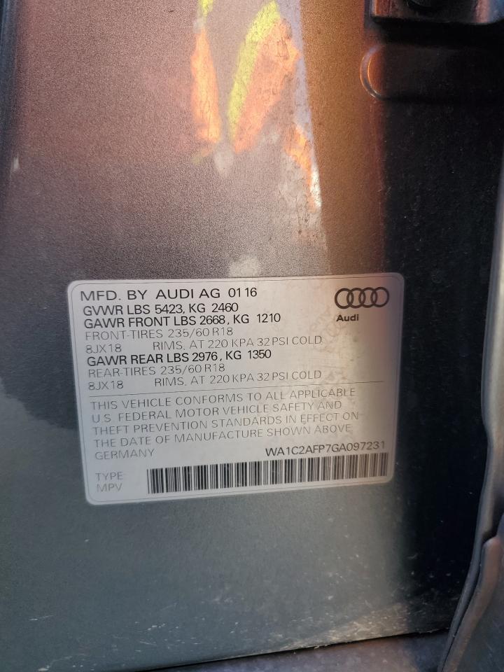 2016 AUDI Q5 - WA1C2AFP7GA097231, колір - Сірий, 2.0, Бензин, Повний привід із США