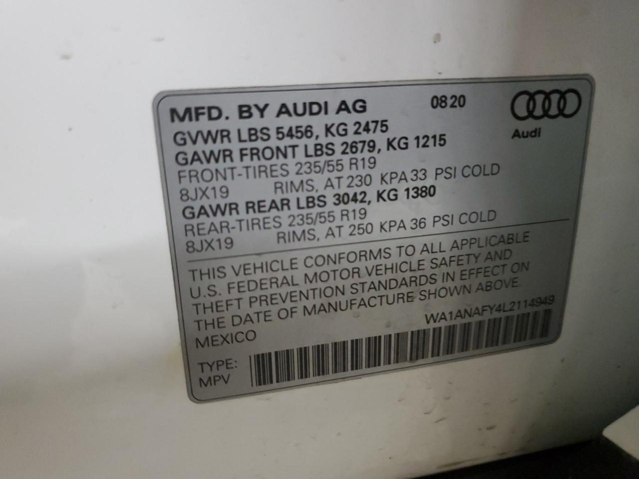 2020 AUDI Q5 - WA1ANAFY4L2114949, колір - Білий, 2.0, Бензин, Повний привід із США