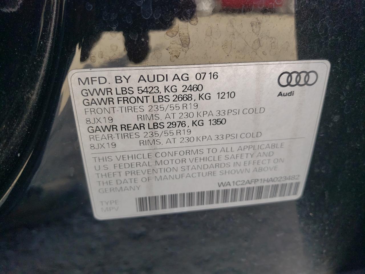 2017 AUDI Q5 - WA1C2AFP1HA023482, колір - Чорний, 2.0, Бензин, Повний привід із США