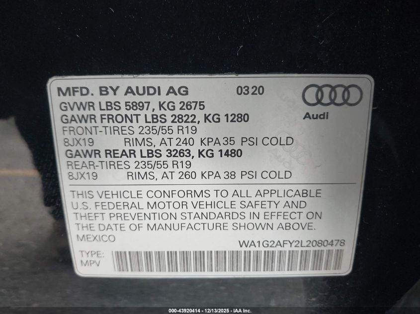 2020 AUDI Q5 - WA1G2AFY2L2080478, колір - Чорний, 2.0, Гібрид, Повний привід із США