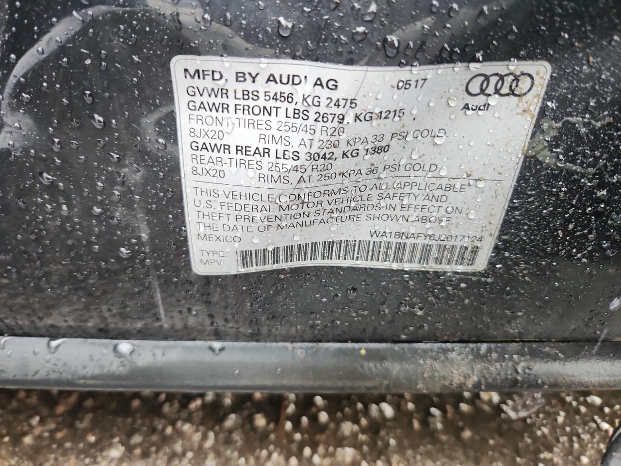 Колір СірийЦиліндри 4Привід Повний привідVIN WA1BNAFY6J2017124Стан НевідомоУшкодження Передня або задня