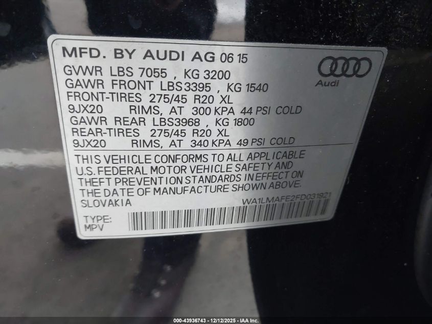 2015 AUDI Q7 - WA1LMAFE2FD031921, колір - Чорний, 3.0, Дизель, Повний привід із США