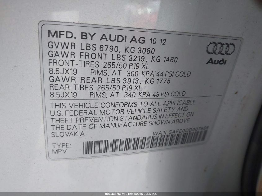 2013 AUDI Q7 - WA1LGAFE0DD007668, колір - Срібний, 3.0, Бензин, Повний привід із США