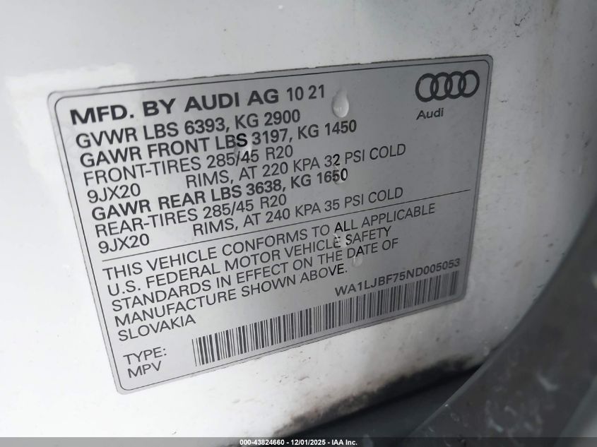 2022 AUDI Q7 - WA1LJBF75ND005053, колір - Білий, 2.0, Бензин, Повний привід із США
