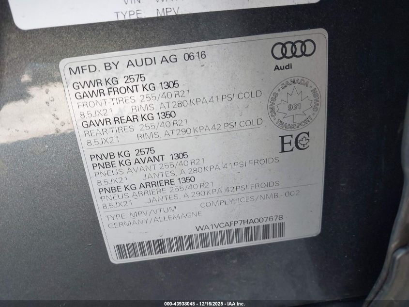 2017 AUDI SQ5 - WA1VCAFP7HA007678, колір - Сірий, 3.0, Бензин, Повний привід із США