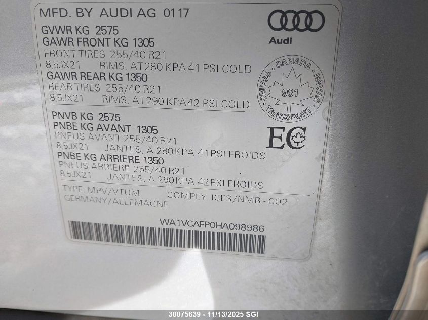 2017 AUDI SQ5 - WA1VCAFP0HA098986, колір - Срібний, , Бензин, Повний привід із США