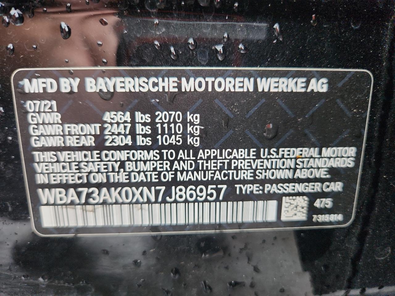 Колір ЧорнийЦиліндри 4Привід Повний привідVIN WBA73AK0XN7J86957Стан Заводиться та їде (перевірено)Ушкодження Передня або задняДата аукціона 2025-10-07