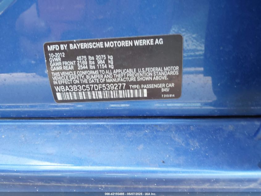 2013 BMW 3 SERIES - WBA3B3C57DF539277, колір - Синій, 2.0, Бензин, Повний привід із США