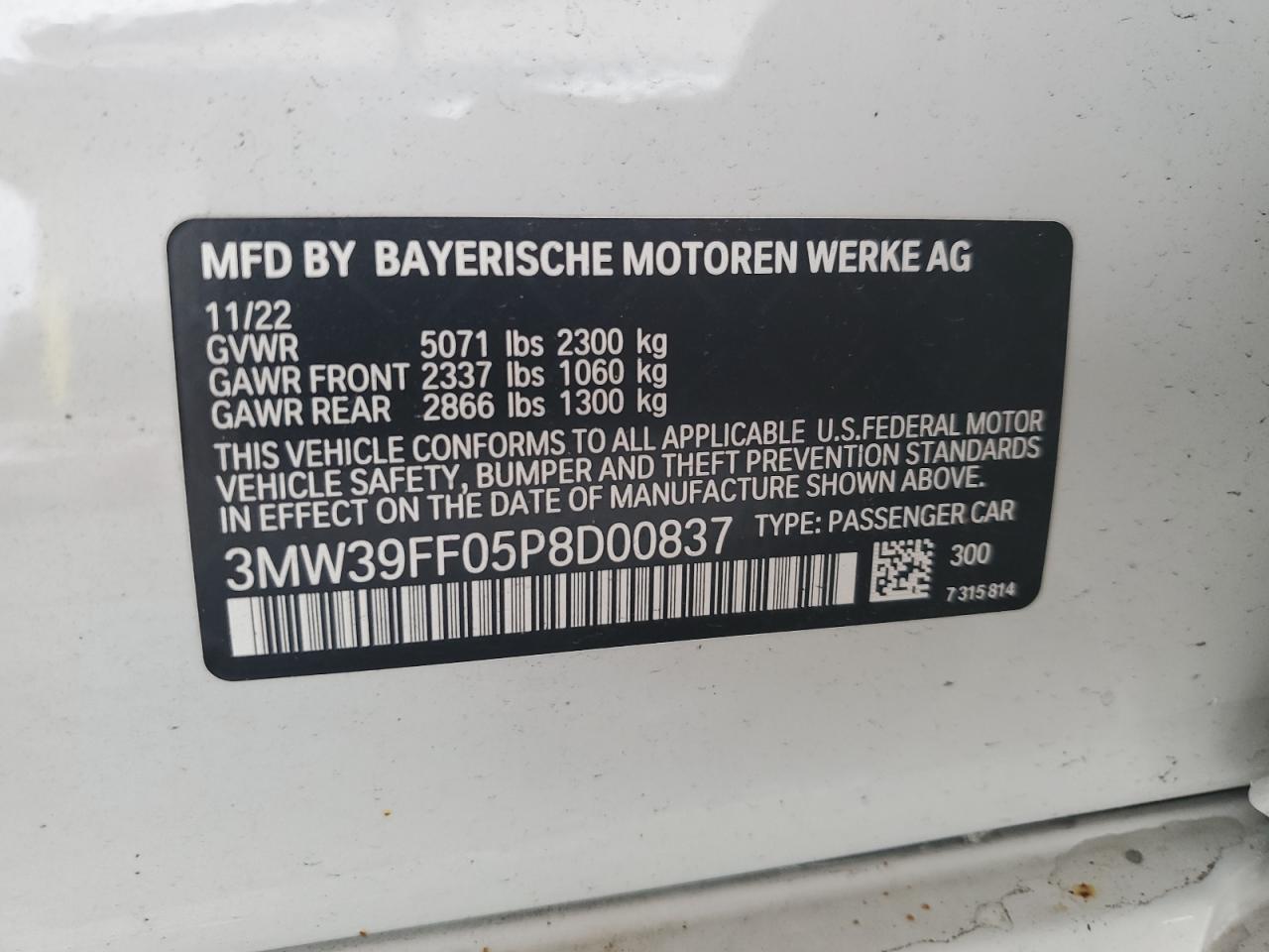 2023 BMW 3 SERIES - 3MW39FF05P8D00837, колір - Білий, 2.0, Гібрид, Задній привід із США
