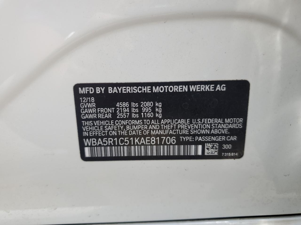 2019 BMW 3 SERIES - WBA5R1C51KAE81706, колір - Білий, 2.0, Бензин, Задній привід із США