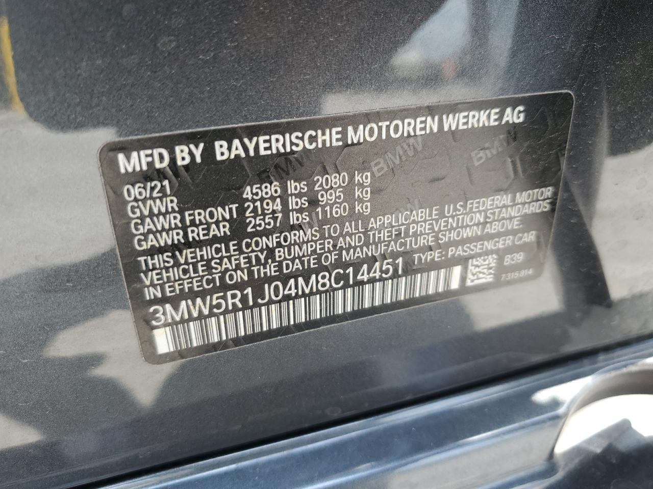 2021 BMW 3 SERIES - 3MW5R1J04M8C14451, колір - Чорний, 2.0, Бензин, Задній привід із США