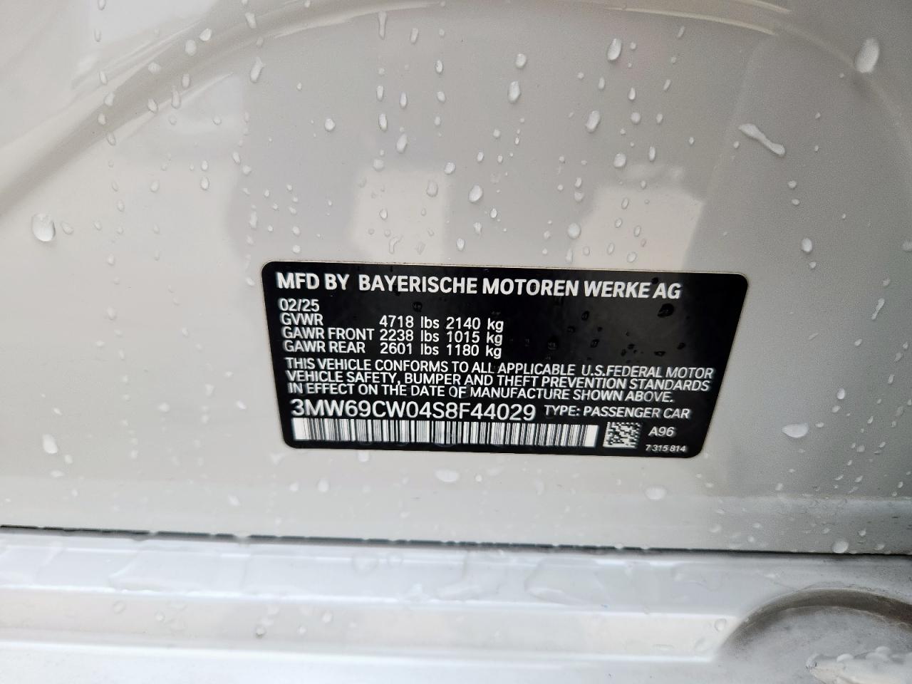 2025 BMW 3 SERIES - 3MW69CW04S8F44029, колір - Білий, 2.0, Бензин, Задній привід із США
