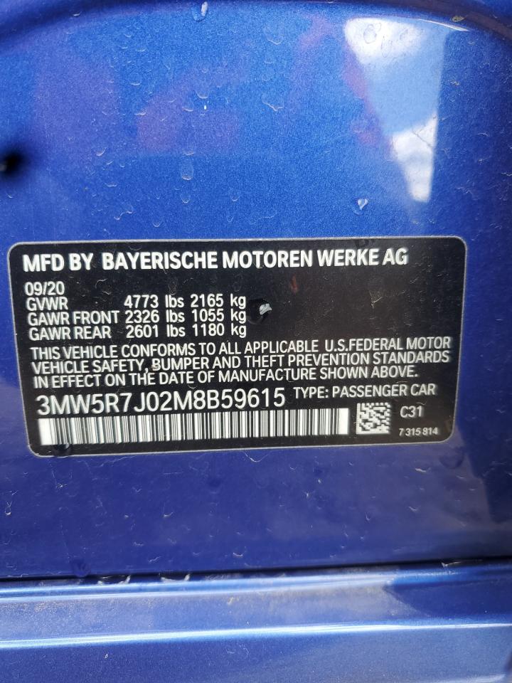 2021 BMW 3 SERIES - 3MW5R7J02M8B59615, колір - Синій, 2.0, Бензин, Повний привід із США